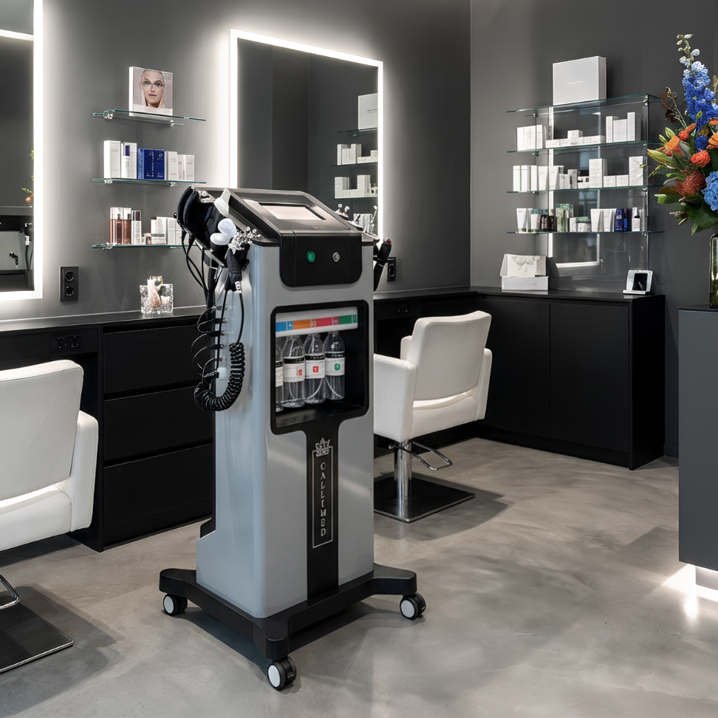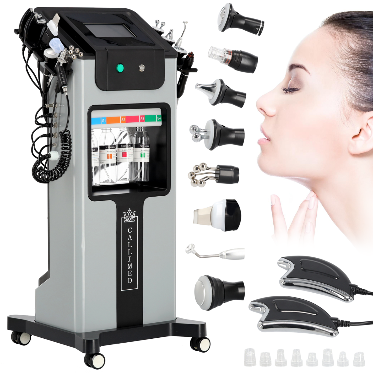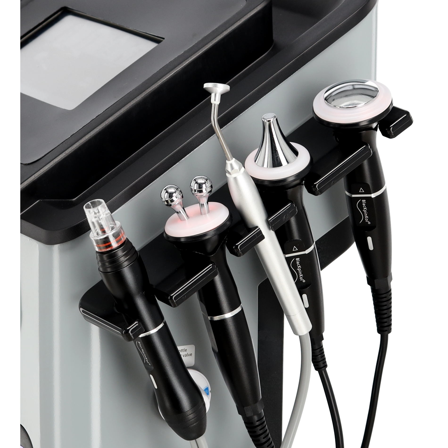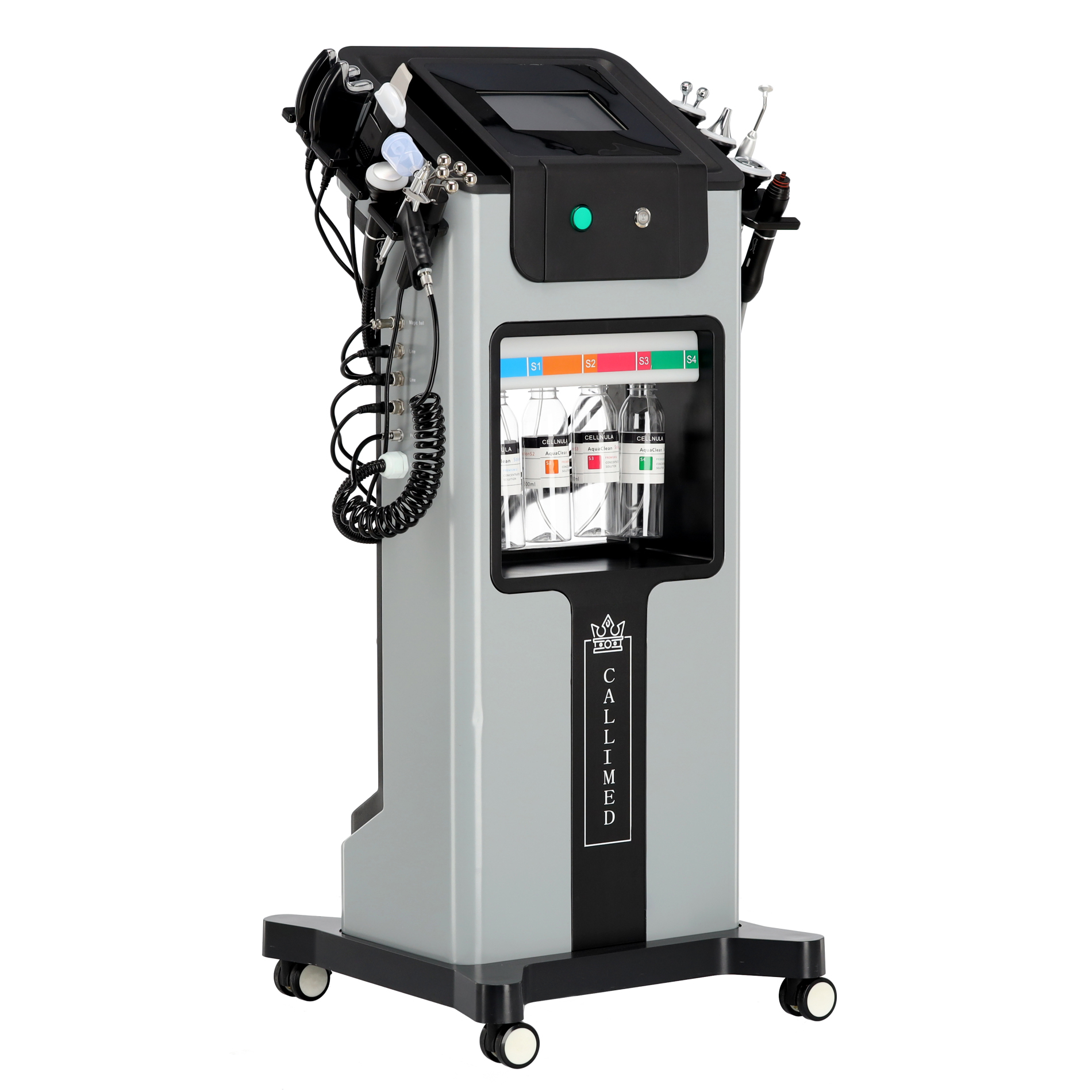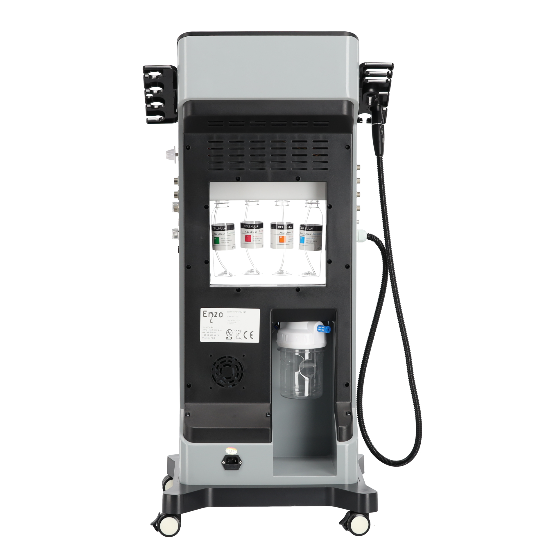 Цей технологічно просунутий пристрій для гідродермабразії поєднує водневе очищення , кавітаційний пілінг , радіочастотний вплив та ультразвук . Він ефективно стимулює вироблення колагену, зменшує зморшки та покращує пружність шкіри.